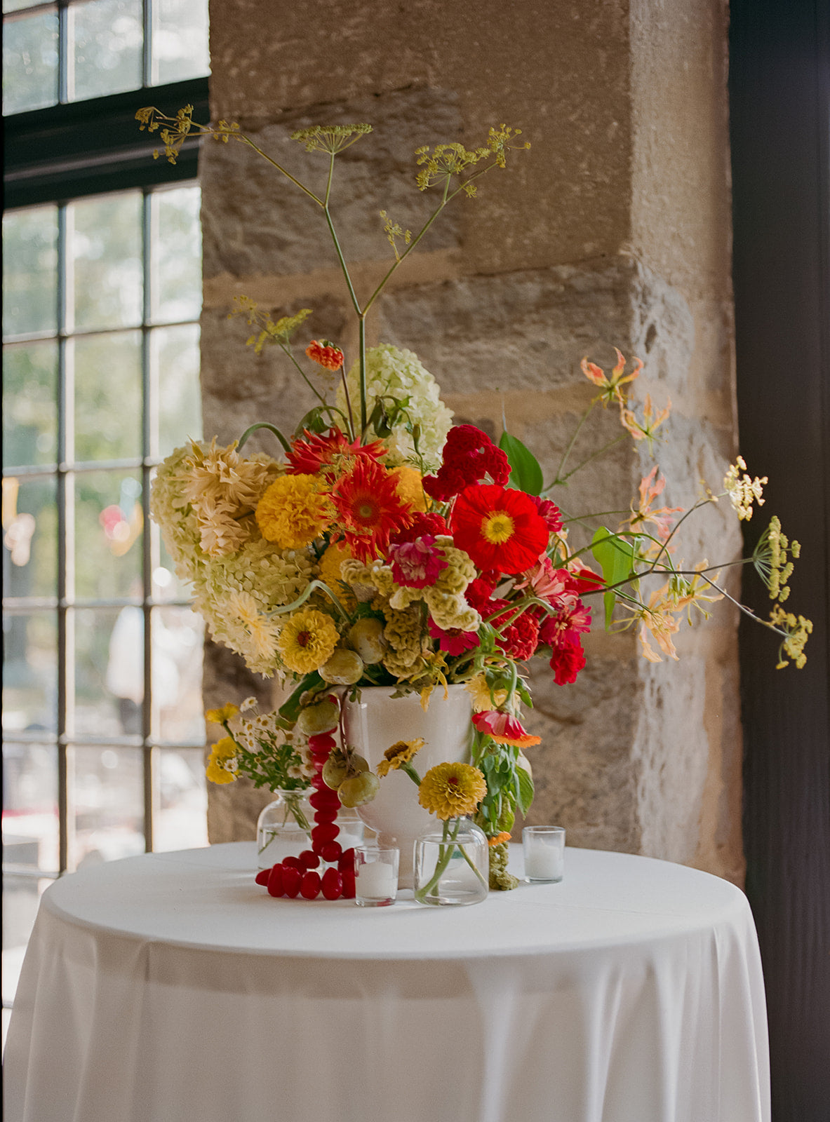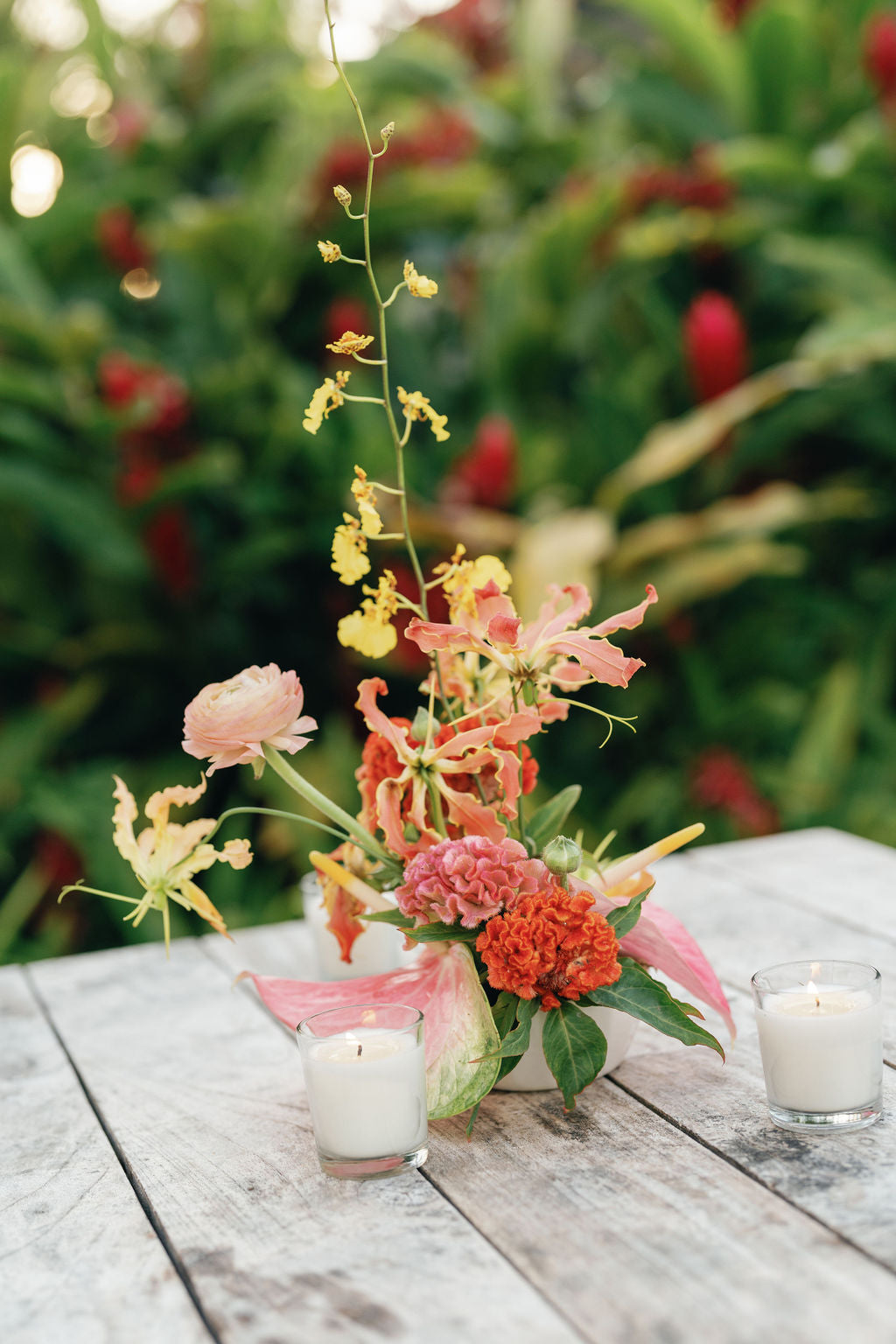 Think juicy brights, quirky stems dancing at different heights, and whimsical elements like pods, berries, twisting branches, or fluttery petals that feel a little bit wild in the best way.